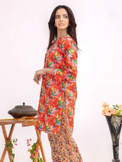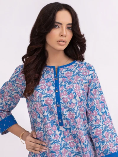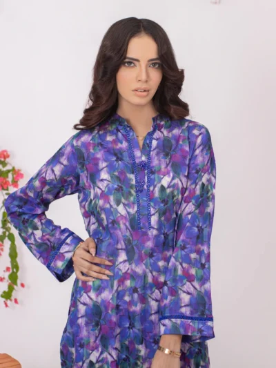 2pc Blue & lilac floral printed shirt with blue printed trouser