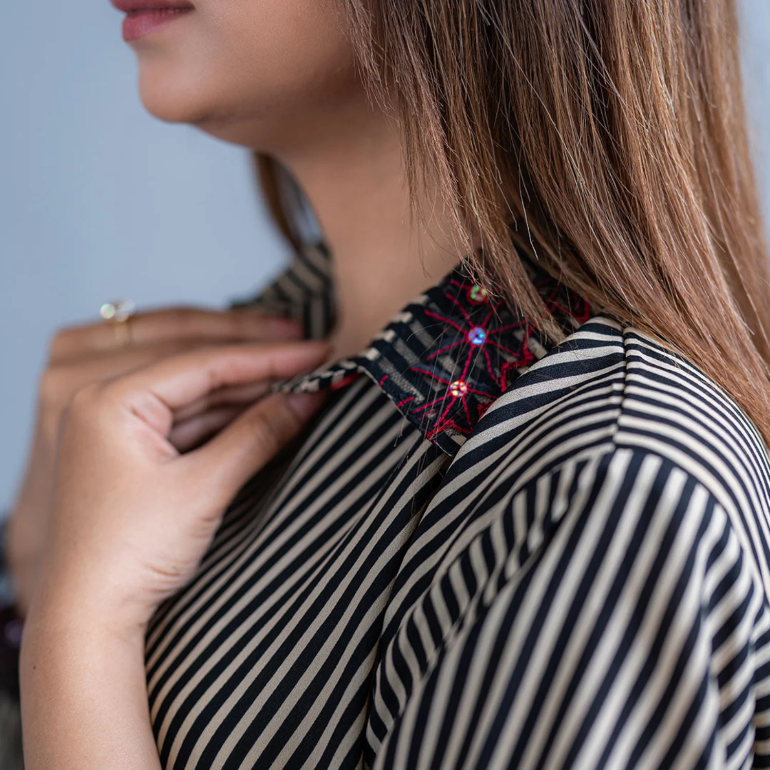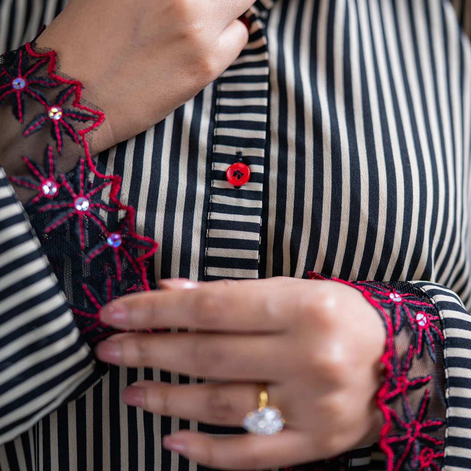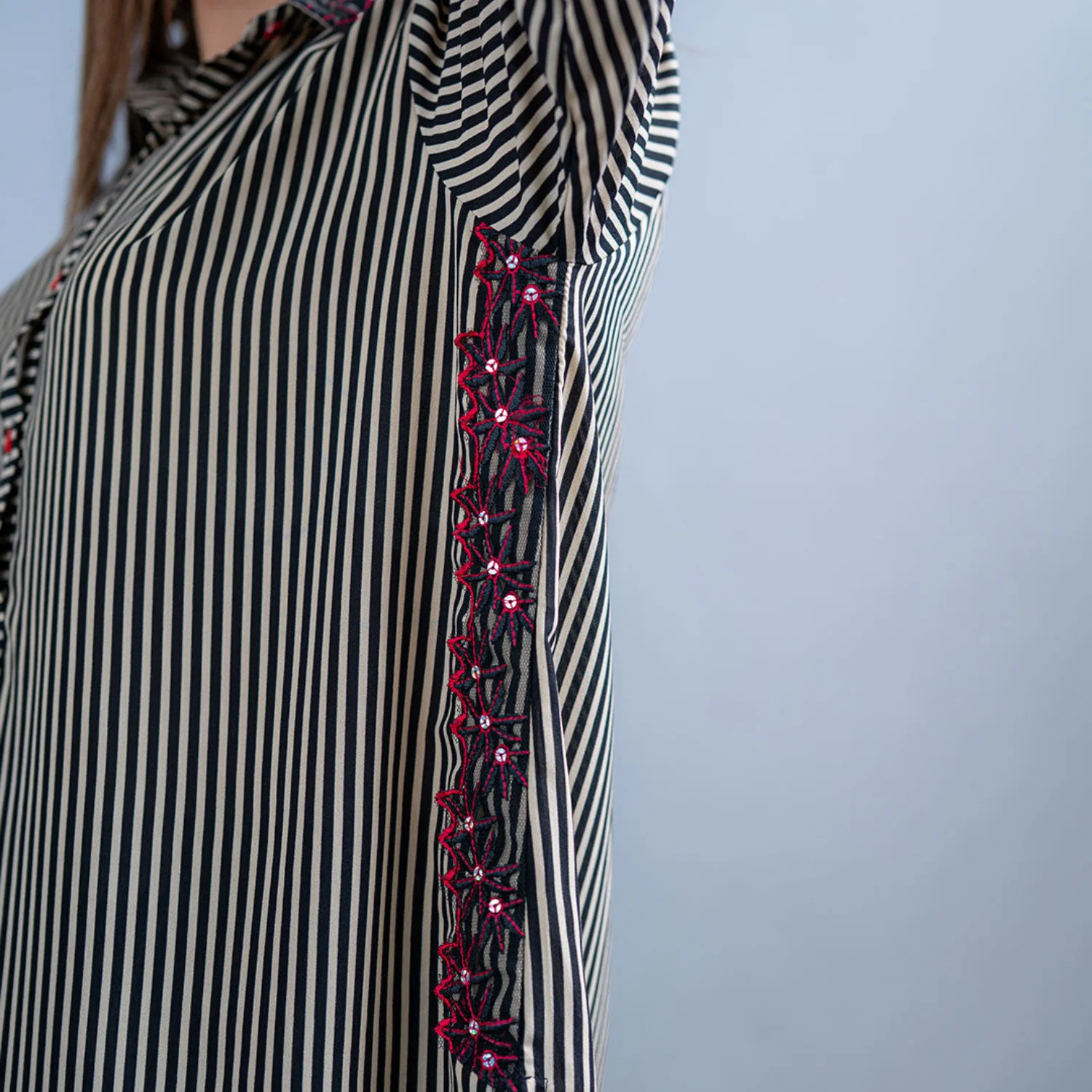 ✔ Black Crepe Shirt – Skin lining with fancy red lace